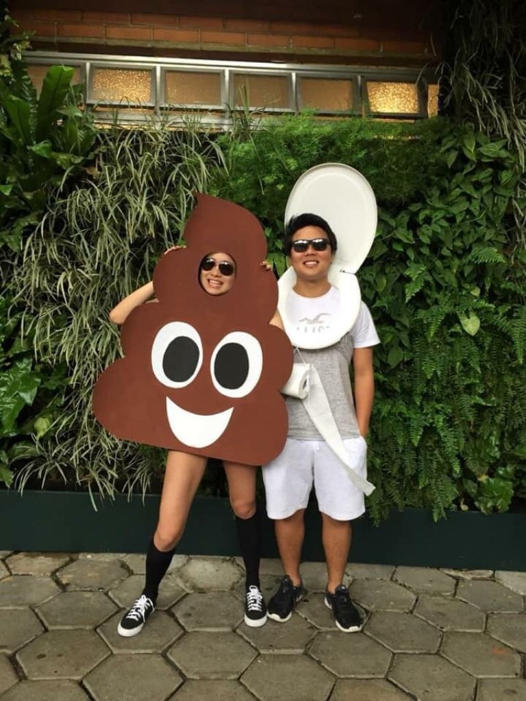 Si buscan un disfraz cómico, esta propuesta les encantará: un conjunto de emoji de excremento y retrete. Su elaboración es sencilla, requiriendo solo cartón, una base de inodoro y un rollo de papel como accesorio.