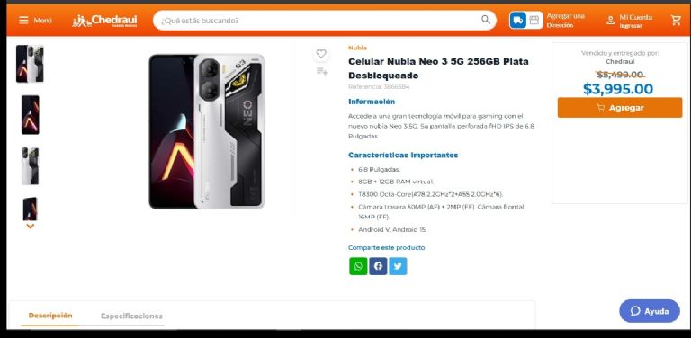 La cadena de supermercados Chedraui ha lanzado una promoción especial en el mercado de teléfonos móviles, enfocándose en usuarios que priorizan el desempeño, la capacidad de almacenamiento y una experiencia fluida para videojuegos. El dispositivo en cuestión es el smartphone Nubia Neo 3 5G, con 256 GB de espacio interno, que ahora está disponible con una reducción de casi el 30% en su precio. Esta oferta posiciona al terminal como una alternativa muy competitiva dentro de la categoría de gama media orientada a los aficionados de los videojuegos, presentándose como una opción accesible para quienes desean un equipo rápido y preparado para largas sesiones de juego.