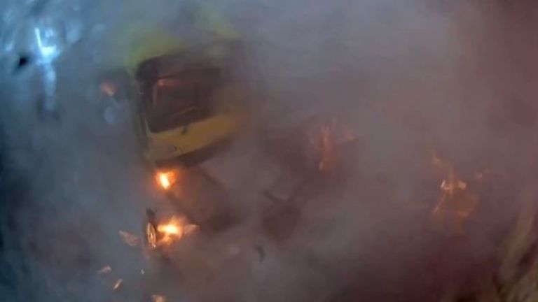 Las impresionantes secuencias, compartidas por la entidad de bomberos de El Paso, muestran que el desenlace trágico se desencadenó cuando un autobús se precipitó desde la plataforma de un elevador hidráulico durante su ascenso. De acuerdo con el reporte adjunto a las grabaciones, al caer, el vehículo impactó contra un tanque de gas natural comprimido. El cilindro sufrió una fisura, provocando la fuga del combustible. Al entrar en contacto con la electricidad de equipos cercanos, se produjo una ignición y una serie de explosiones consecutivas.