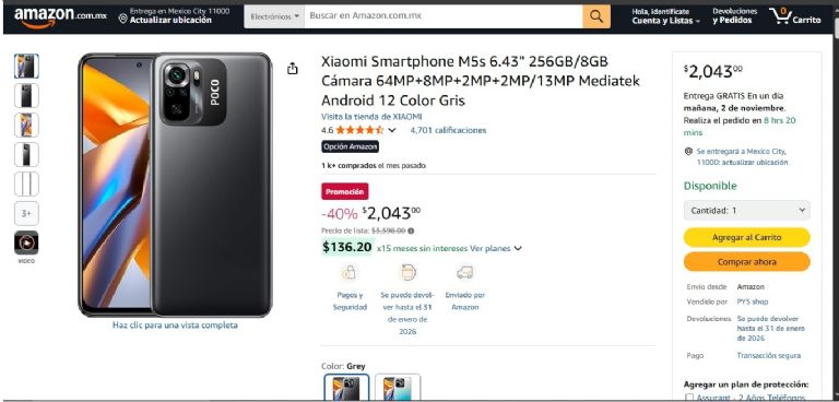 La promoción vigente en Amazon aplica una reducción del 40% sobre su precio habitual, resultando en un ahorro considerable respecto a su coste original. El equipo se distribuye con envío sin coste y respaldo de garantía oficial, sumando beneficios como la posibilidad de realizar pagos a plazos. Esta disminución lo posiciona como una de las alternativas más atractivas en su categoría, especialmente para aquellos que buscan un teléfono móvil fiable, ágil y con una generosa capacidad de almacenamiento.