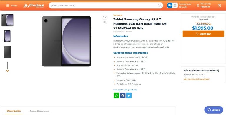 La impresionante rebaja del 35% en Chedraui posiciona a la Samsung Galaxy Tab A9 como una opción excepcionalmente asequible. Para aquellos que buscan una tableta funcional y económica para fines educativos, de entretenimiento o trabajo ligero, esta oferta es una oportunidad dorada que combina rendimiento y precio de manera excepcional.
