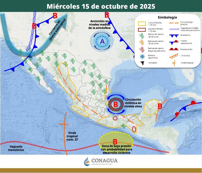 Prepárese para la continuidad de **precipitaciones** en gran parte del territorio nacional. El Servicio Meteorológico Nacional (SMN), adscrito a la Comisión Nacional del Agua (Conagua), ha emitido proyecciones detalladas sobre el comportamiento del clima para la presente semana, abarcando del martes 14 al jueves 16 de octubre.