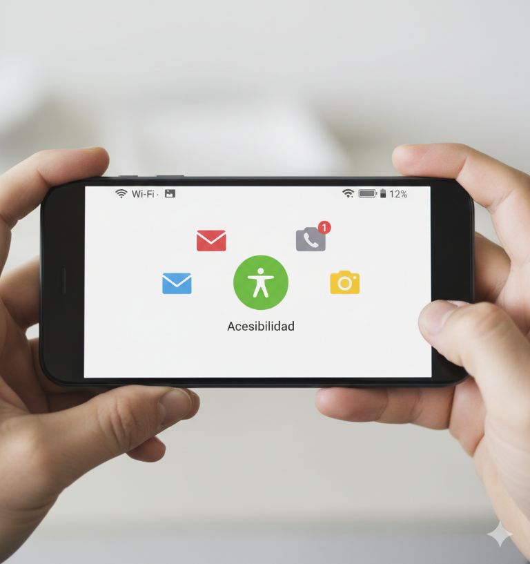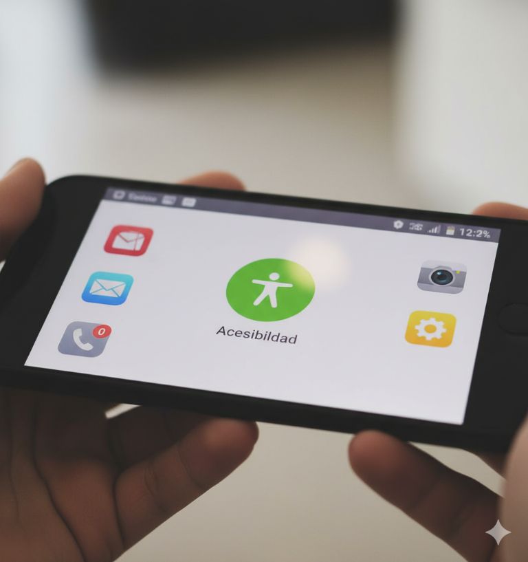 La representación de una persona o silueta humana en tu pantalla te guía directamente a las potentes opciones de accesibilidad de Android. Estas herramientas están diseñadas para potenciar el control de tu dispositivo y habilitar funciones esenciales, como un lector de pantalla, pensado para usuarios con problemas de visión.