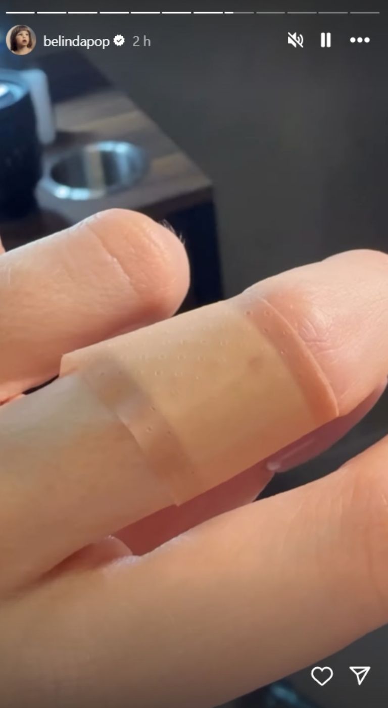 “Qué más me podía pasar, después de tocar la batería, no estoy segura si tengo el dedo roto. Es lo último que me faltaba”, confesó Belinda a través de sus canales digitales.
