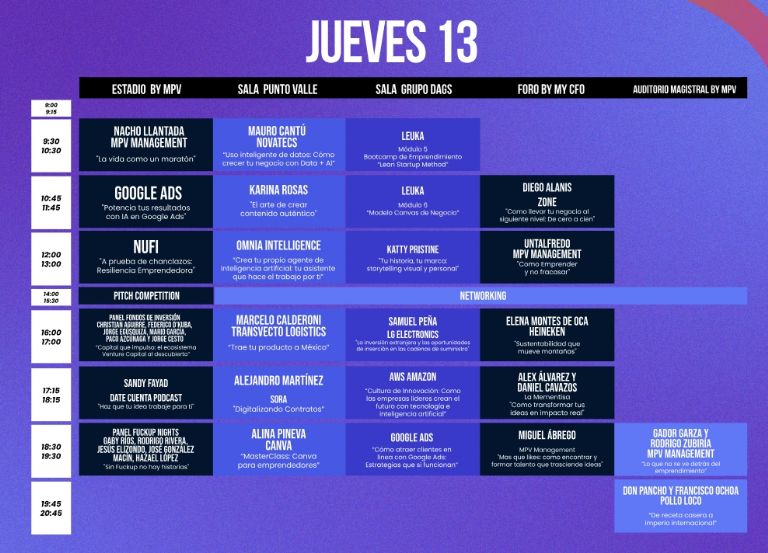 Durante los tres días del evento, se desplegará un programa de charlas magistrales impartidas por figuras empresariales de gran calibre. La diversidad de experiencia y conocimiento estará representada por: