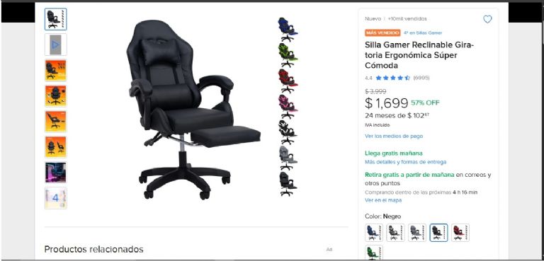 Actualmente, Mercado Libre presenta esta silla gamer con un descuento excepcional de aproximadamente el 60% sobre su valor original. Su precio actual se sitúa alrededor de los $1,499 MXN, un cambio drástico frente a los más de $3,500 MXN que solía costar en la misma plataforma. Esta rebaja sustancial la posiciona como una alternativa sumamente atractiva, sin comprometer la calidad ergonómica ni el diseño. La oferta en Mercado Libre incluye la opción de entrega a domicilio y, en muchos casos, facilidades de pago a plazos, ideal para quienes buscan optimizar su espacio sin realizar una inversión inmediata elevada.
