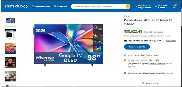 La oferta actual de Sam’s Club rebaja este Smart TV en casi un 50%, según se detalla en su página oficial. Este descuento histórico lo posiciona como una opción increíblemente competitiva dentro del segmento de televisores de alta gama, donde los modelos de gran formato suelen tener precios significativamente más elevados. Es importante tener en cuenta que esta promoción tiene una duración limitada y la disponibilidad del producto puede estar sujeta a existencias.