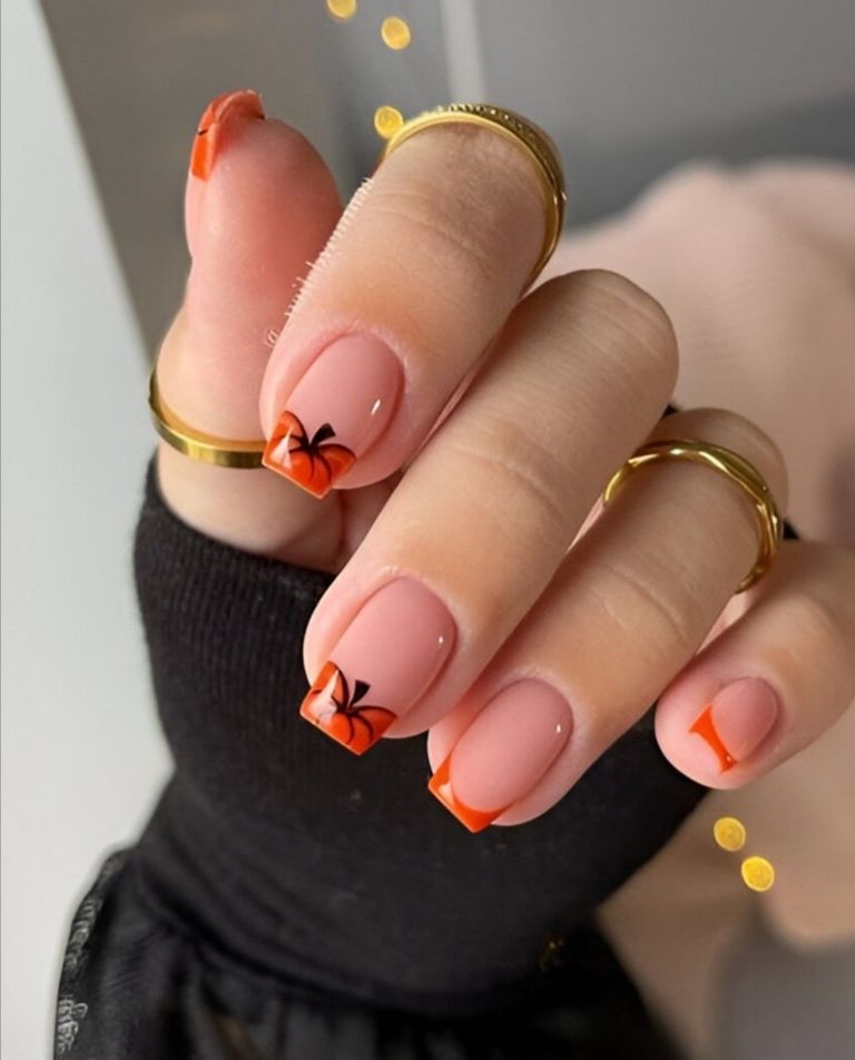 Para un toque más sofisticado, considera un diseño minimalista en bases nude, acentuado con detalles metálicos en cobre o dorado. Las opciones de acabado son tan variadas como tus preferencias: puedes optar por brillos deslumbrantes, efectos tridimensionales impactantes o un elegante acabado mate. Hay un estilo de “pumpkin nail” esperando por ti.