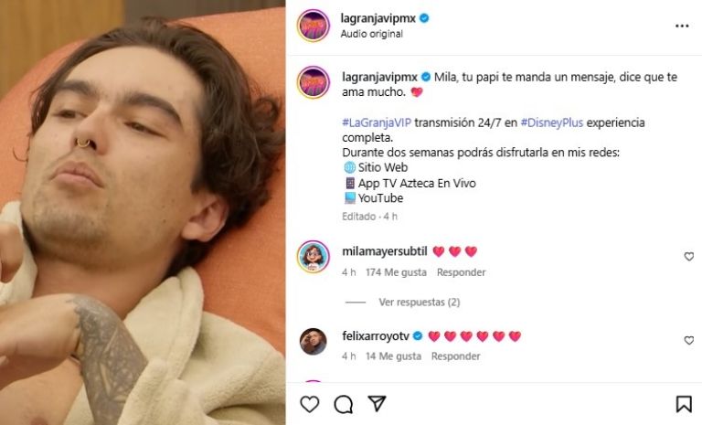 Durante una charla íntima con otros concursantes, Sergio Mayer Mori mencionó con ternura a su hija, Mila Mayer Subtil. Con profunda emoción, no solo le expresó el inmenso amor que siente por ella, sino que también aprovechó para agradecerle su presencia y apoyo en el arranque de esta emocionante aventura televisiva.