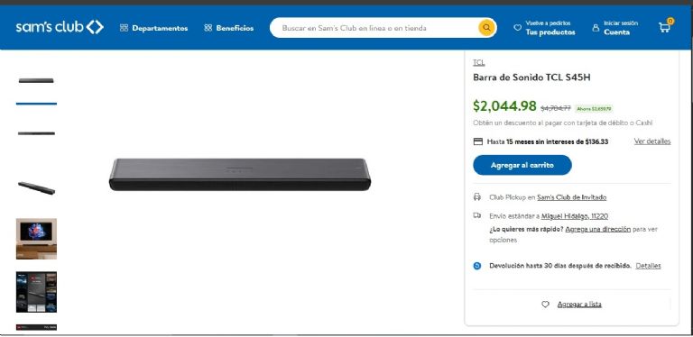 La promoción especial en **Sam’s Club** sitúa la **barra de sonido TCL S45H** a un precio excepcional de **$4,704.77 MXN**. Esta oferta representa un ahorro significativo de casi la mitad de su valor original. La promoción es válida tanto para compras online como para miembros que visiten las tiendas físicas, siempre y cuando haya existencias disponibles. Benefíciate del envío a domicilio y descubre cómo este sistema puede mejorar tu entretenimiento en casa. El descuento podría variar ligeramente según tu ubicación.
