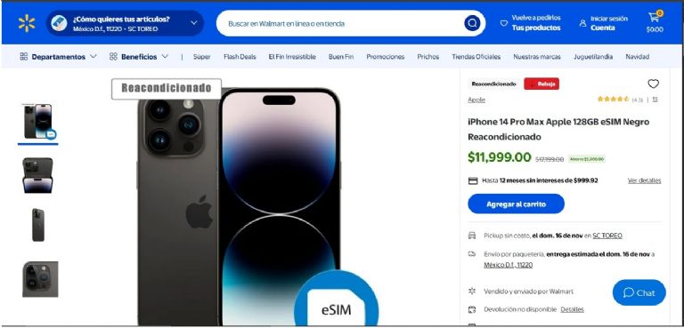 Oferta Exclusiva: iPhone 14 Pro Max Reacondicionado en Walmart