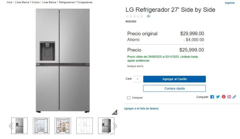 Costco sorprende a sus socios con una espectacular rebaja de 4,000 pesos en un refrigerador LG de 28 pulgadas, modelo side by side. Este indispensable electrodoméstico estará disponible por tan solo 25,999 pesos, ¡con envío incluido! Aprovecha esta oportunidad única durante el sábado 1 y el domingo 2 de noviembre.