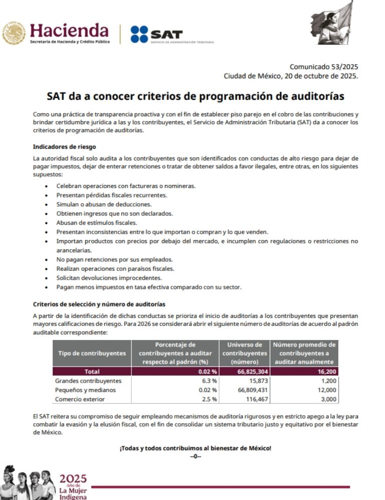 SAT Enfoca Revisiones a Contribuyentes con Movimientos Fiscales Atípicos