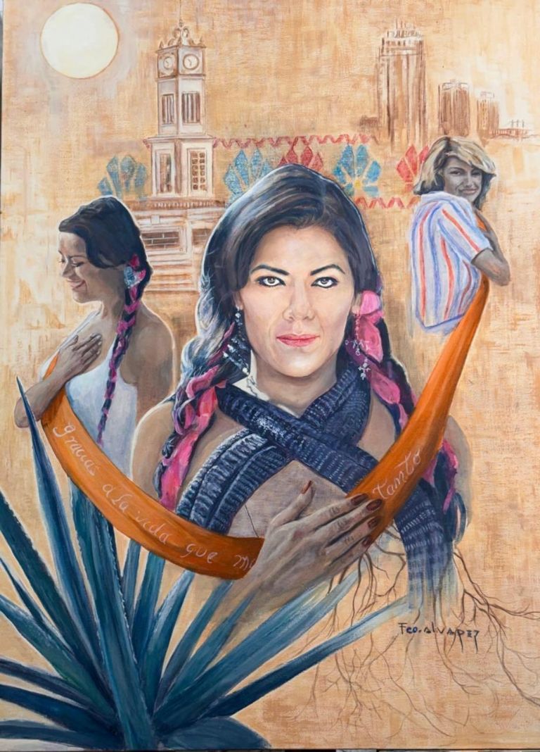 “La obra refleja tres dimensiones esenciales de la existencia de la cantante, intrínsecamente ligadas a sus raíces binacionales: su profunda conexión con Oaxaca, su herencia norteamericana, la fortaleza de sus orígenes indígenas y su formación temprana en Estados Unidos”, explica el artista.