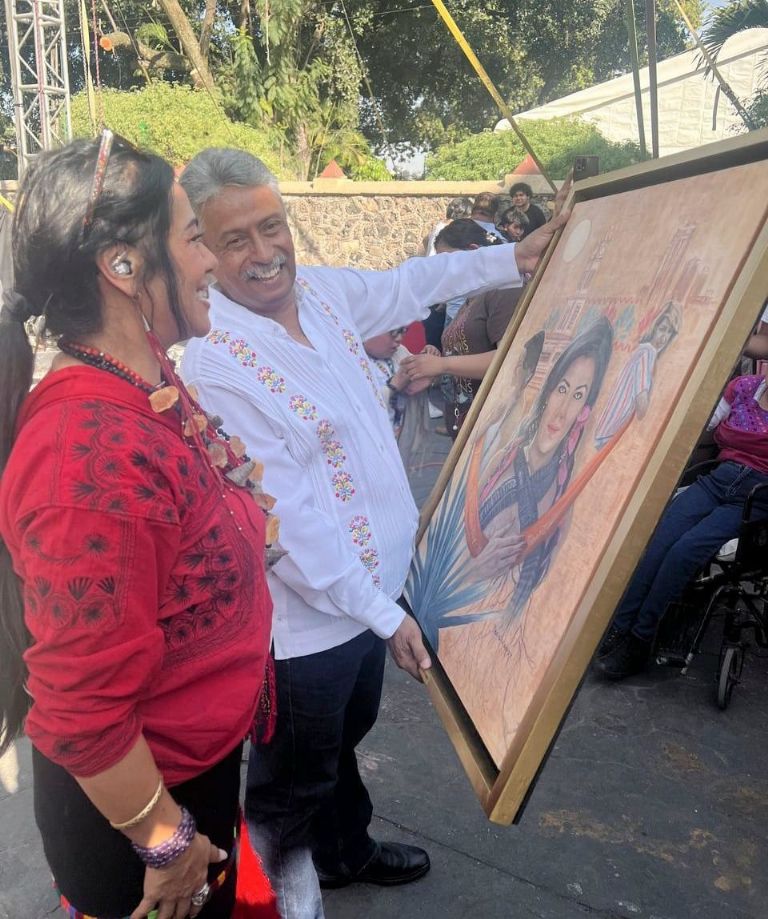El maestro Francisco Álvarez revela que su obra visualiza, a través de un magistral uso de la cromática y la plasticidad, el inspirador recorrido vital de Lila Downs, una figura fundamental en la promoción de la cultura nacional y originaria de Oaxaca.