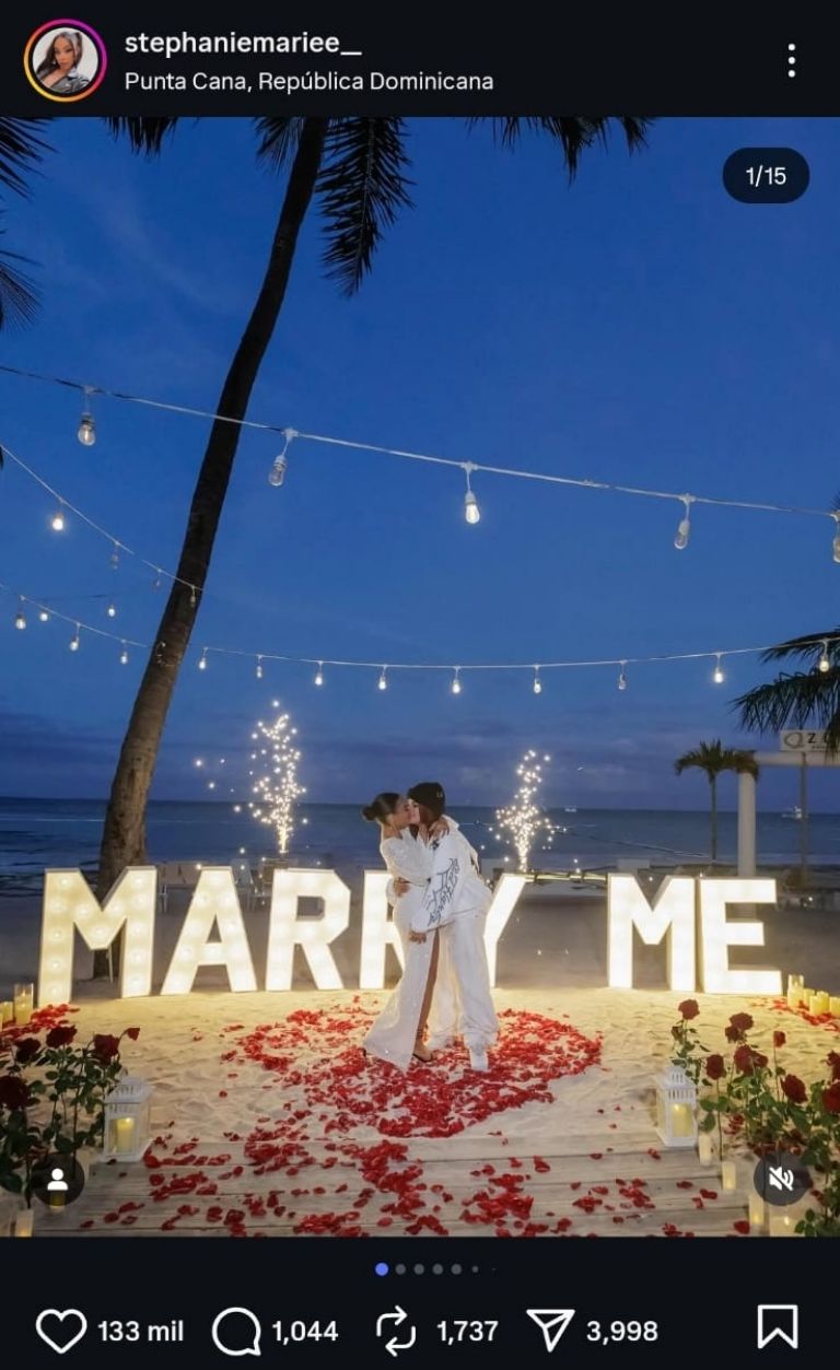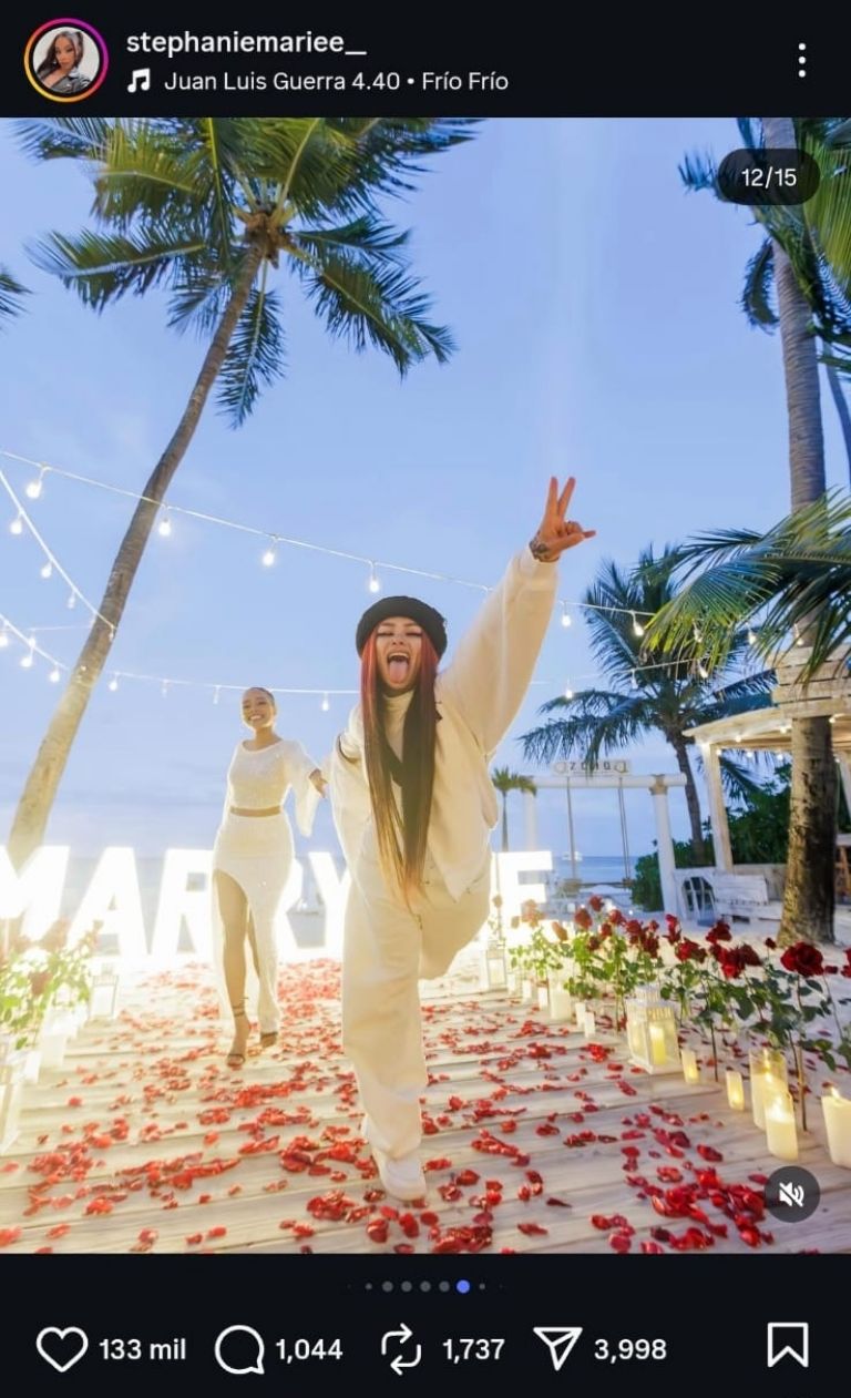 La talentosa rapera, de 38 años, y su prometida, Stephanie Mariee, eligieron las redes sociales para compartir las conmovedoras instantáneas de su compromiso. Ambas lucen atuendos blancos de un estilo casual y relajado, perfectos para el entorno playero, realzando la atmósfera romántica que se vio acentuada por la presencia de vibrantes rosas dispuestas para la ocasión.