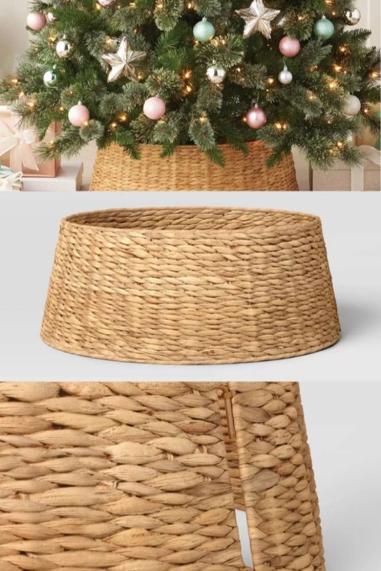 En sintonía con la creciente tendencia hacia lo rústico, lo natural y lo sostenible, las cestas de mimbre, yute o fibras orgánicas se presentan como una alternativa encantadora a las faldas de tela convencionales. Estos elementos no solo ocultan discretamente el soporte del árbol, sino que también infunden calidez y orden visual, integrándose a la perfección con la preferencia por los materiales naturales.