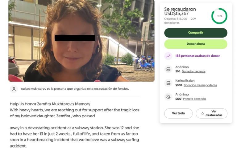 “Con profundo pesar, solicitamos su apoyo tras la devastadora pérdida de mi querida hija, Zemfira, quien pereció en un trágico accidente en una estación del metro”, expresa la emotiva publicación.