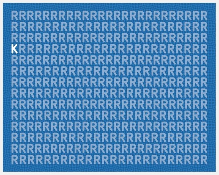 Hoy te presentamos un desafío que, a primera vista, parece sencillo, pero esconde una trampa visual ingeniosa. Tu misión es encontrar una única letra ‘K’ camuflada entre una mar de letras ‘R’. ¿Crees que puedes detectarla en tiempo récord?