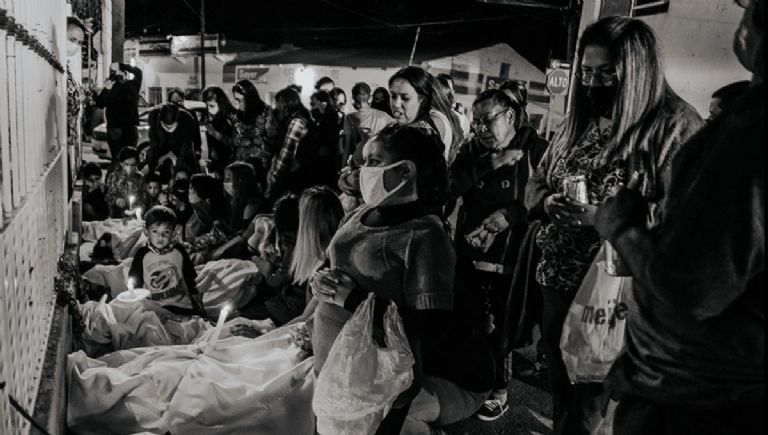 Envueltos en mantas y armados con velas, estos pequeños se transforman, por un momento, en almas que interceden por un compañero. Uno de ellos permanece inmóvil en el centro, simulando un descanso eterno. Aunque la imagen puede evocar un funeral, esta escenificación es en realidad “Los Seremos”, una arraigada y emotiva costumbre del Día de Muertos en Chihuahua.