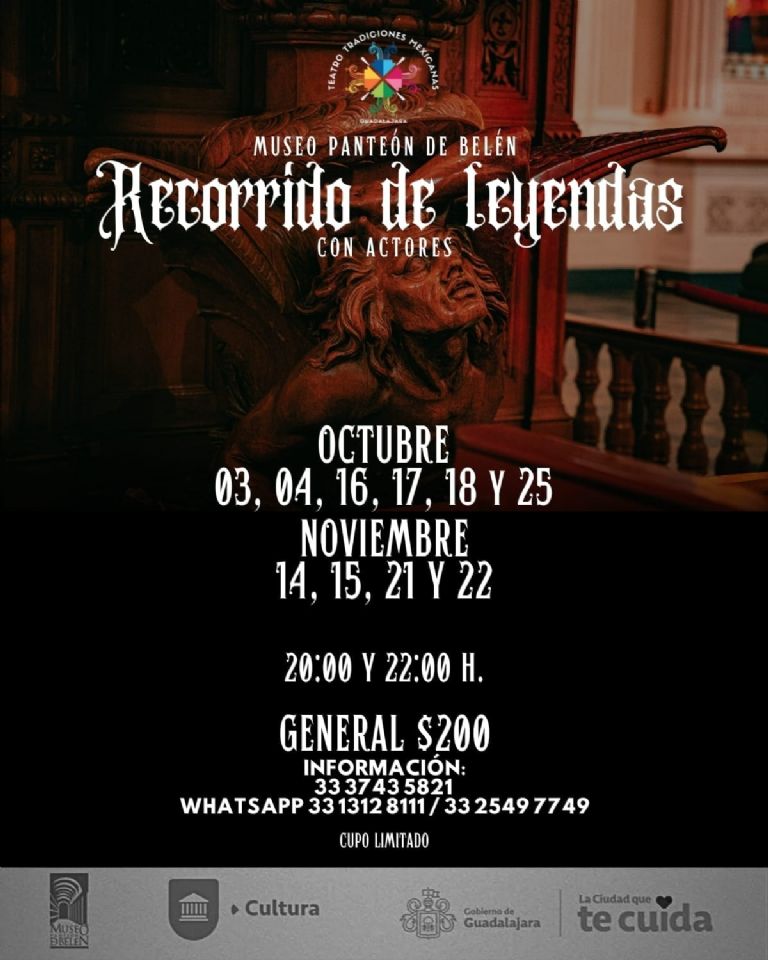 Los recorridos nocturnos durante la temporada especial de Día de Muertos pueden tener tarifas variables. Sin embargo, aquellos que incluyen la cautivadora narración de historias legendarias, interpretadas por actores, tienen un costo de 200 pesos por persona. Para asegurar tu lugar en esta experiencia única o para solicitar más información, no dudes en contactar vía WhatsApp al 3313128111 o al 3325497749.