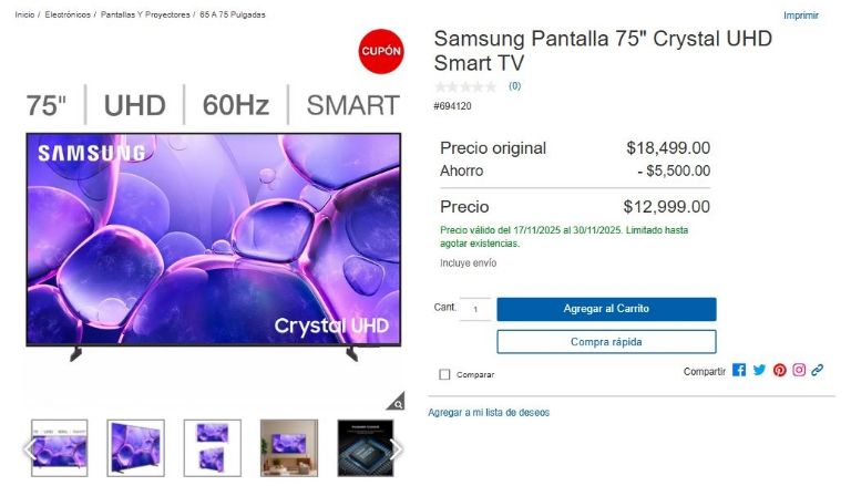 Gran Pantalla Samsung de 75’’: Ahorra 5,500 Pesos en Costco