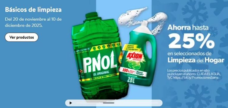 Mantén tu hogar impecable y tu bolsillo contento. Los miembros de Sam’s Club disfrutarán de hasta un 25% de descuento en una gran variedad de productos seleccionados del departamento de limpieza para el hogar. Estas fantásticas promociones estarán disponibles durante todo el fin de semana, sábado 22 y domingo 23 de noviembre, y podrás aprovecharlas tanto en tienda física como en compras online.