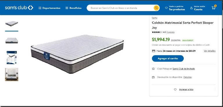 El prestigio de la marca Serta en México se caracteriza por ofrecer productos de gama media-alta, que suelen representar una inversión considerable. Por ello, conseguir un colchón matrimonial Serta con un 35% de descuento es un beneficio económico muy significativo. Además, Sam’s Club suele enriquecer estas promociones con atractivas facilidades de pago, como meses sin intereses, opciones de entrega a domicilio y la conveniencia de recoger tu compra directamente en tienda.